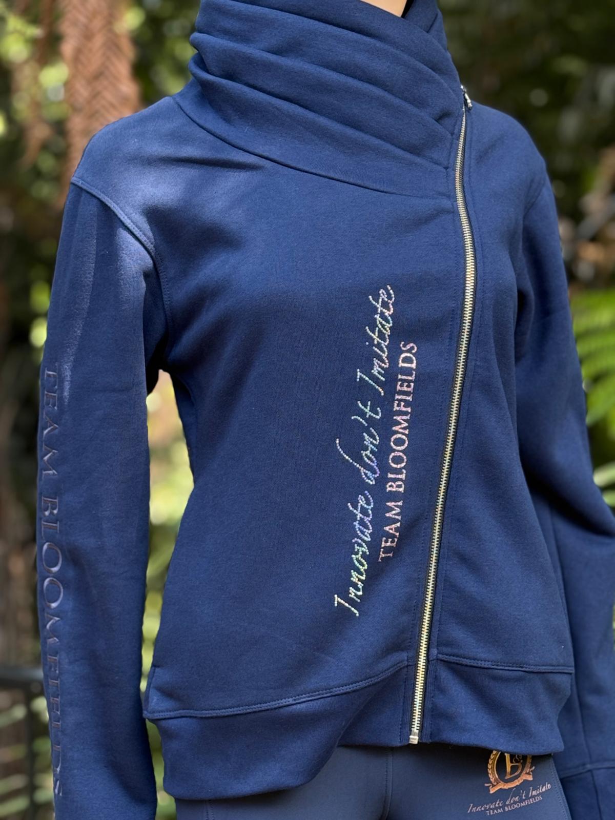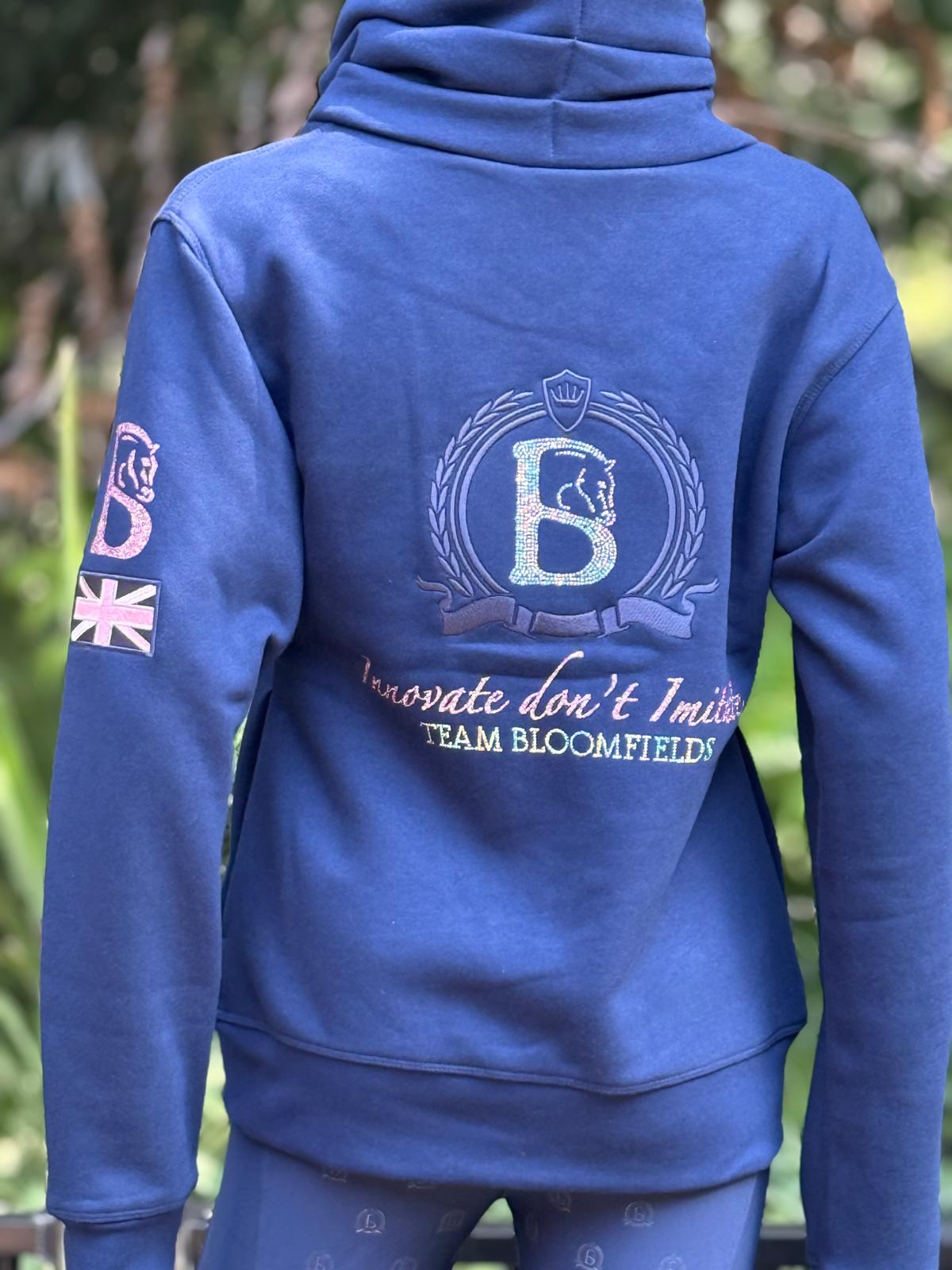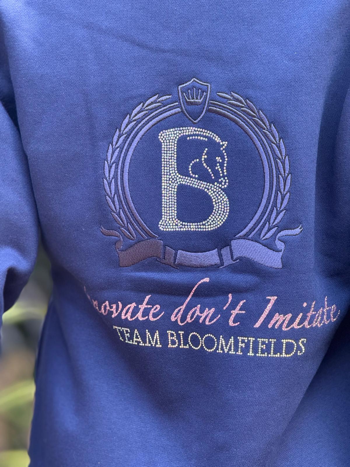 Finished with Team Bloomfields embroidery on one sleeve and the signature Bloomfields ‘B’ with a Union Jack accent on the other, this top proudly carries our ethos — “Innovate, don’t imitate” — along the front. The look is completed with Team Bloomfields branding across the back and a sparkling rhinestone ‘B’ for a luxurious finish.