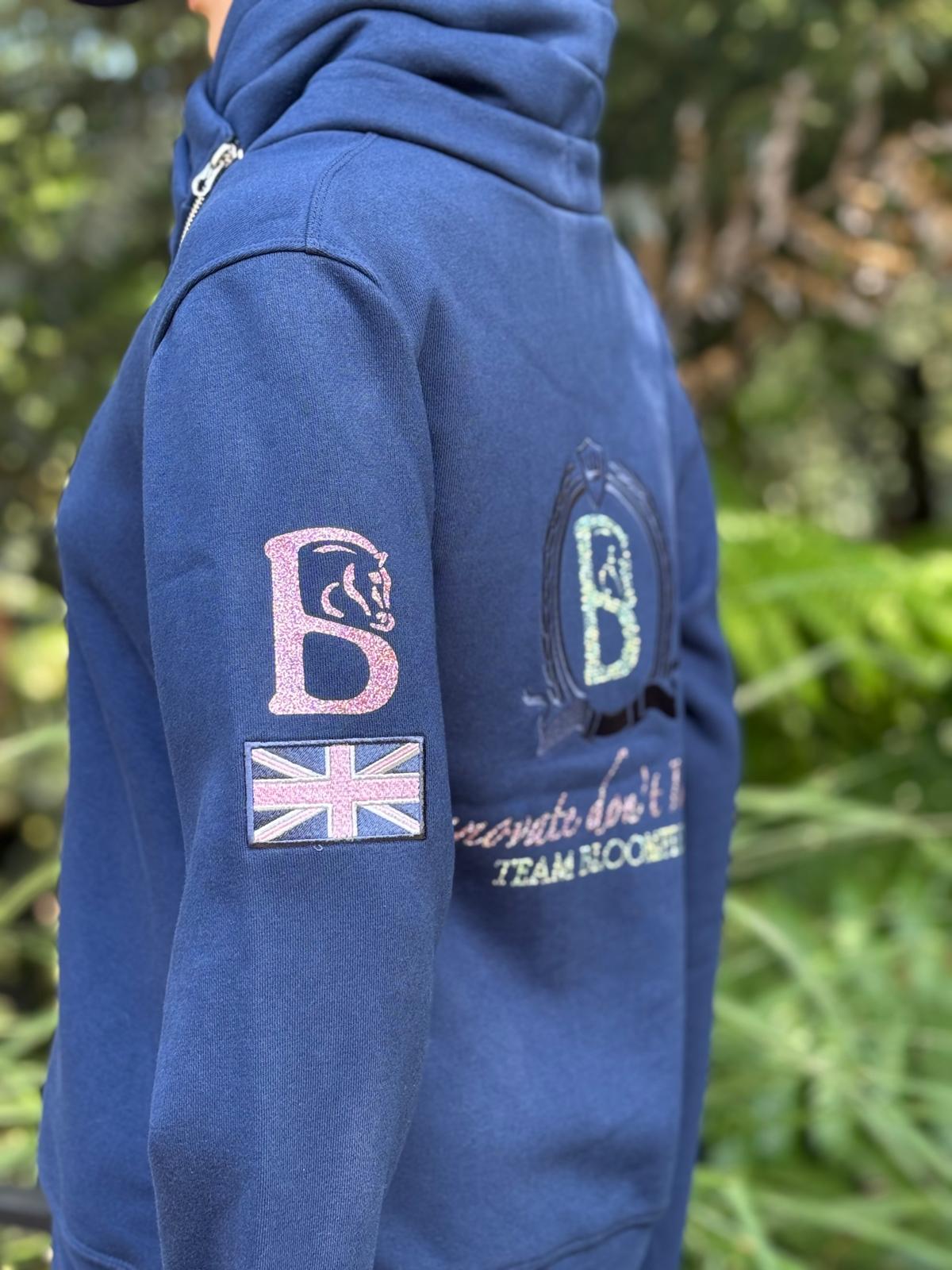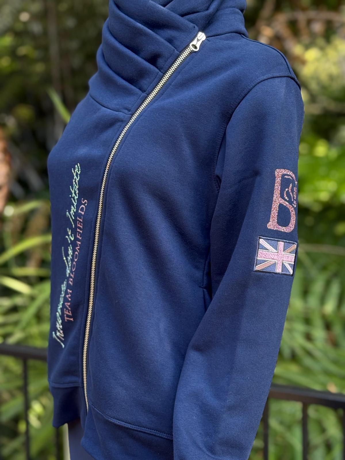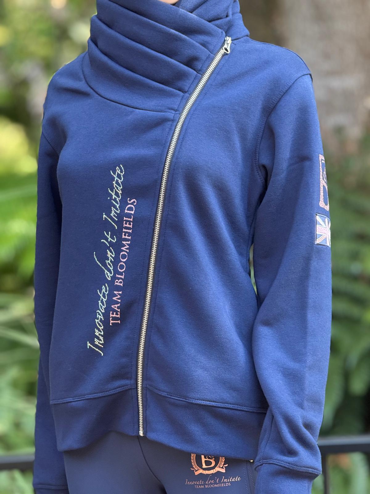 Finished with Team Bloomfields embroidery on one sleeve and the signature Bloomfields ‘B’ with a Union Jack accent on the other, this top proudly carries our ethos — “Innovate, don’t imitate” — along the front. The look is completed with Team Bloomfields branding across the back and a sparkling rhinestone ‘B’ for a luxurious finish.